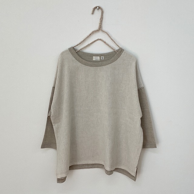 ▼布帛切り替えフレンチ ▼品番 : 43178 ▼素材 : リネン-100% 《プルミエルリネン天竺×L.Cストライプ》 ▼サイズ :フリー(身巾:60cm 身丈:57/61cm) プルミエルリネンを使用した布帛切り替え7分袖プルオーバーは、通気性に優れた軽やかな素材が魅力です。7分袖デザインは腕を美しく見せ、快適な着心地ながらもエレガントな印象を与えます。日常のおしゃれ着やお出かけにもぴったりの一着です。さらりとした肌触りは、暑い季節にも心地よく、さまざまなボトムスとのコーディネートに幅広く対応します。また、レイヤードスタイルにも最適で、カーディガンやジャケットとの重ね着も楽しめます。大切にお手入れすることで、長くご愛用いただける商品です!