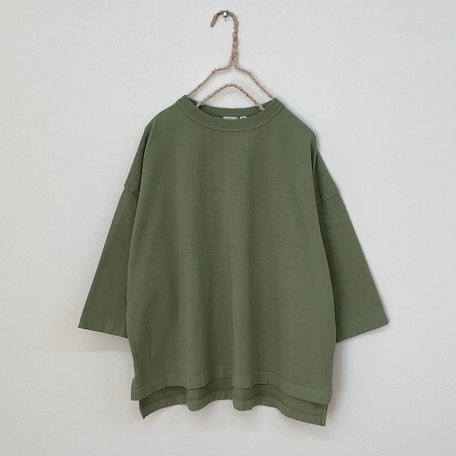 ▼7分袖ワイドTシャツ ▼品番 : 43084 ▼素材 : 綿-100% 《16/BD 天竺》 16/BD天竺は肉厚で透けにくい、カリッとした質感になります。 透けにくいので一枚でも着用いただけます。 ▼サイズ :フリー(身巾:58cm 着丈:56/61cm 肩丈58cm 天巾:16.5cm) DAYSで新たに登場の7分袖ワイドTシャツです!ワイドなシルエットは、リラックスした着心地を実現し、トレンド感を漂わせます。綿100%の素材を使用しており、柔らかな肌触りと抜群の通気性が魅力です。 カジュアルながらも洗練された印象を与える7分袖デザインは、春秋の間にぴったりなアイテムであり、さまざまなスタイルに合わせやすい一枚です。デニムやスカートとのコーディネートはもちろん、レイヤードスタイルにも活躍すること間違いなしです! ※この製品は独特な風合いを出す為に製品染めをしています。 加工の特性上、多少の色落ちやパーツごとの濃淡が出ている部分がありますが、加工の特徴ですのでご了承の上、本製品をお楽しみください。 また、着用時の汗や摩擦により色落ちの恐れがありますので、淡色物と合わせての着用はお避けください。