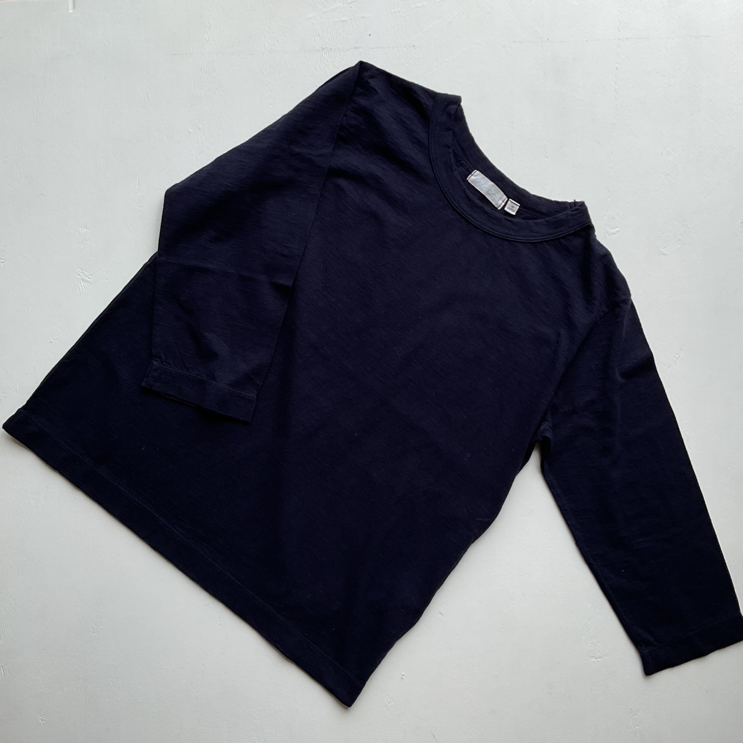 凹凸のあるポコポコとした生地感が特徴です。つるっとした生地とは違うカジュアルで優しい風合いや表情を楽しめます。シンプルなクルーネックデザインは、コーディネートに取り入れやすく、幅広いスタイルにマッチします!