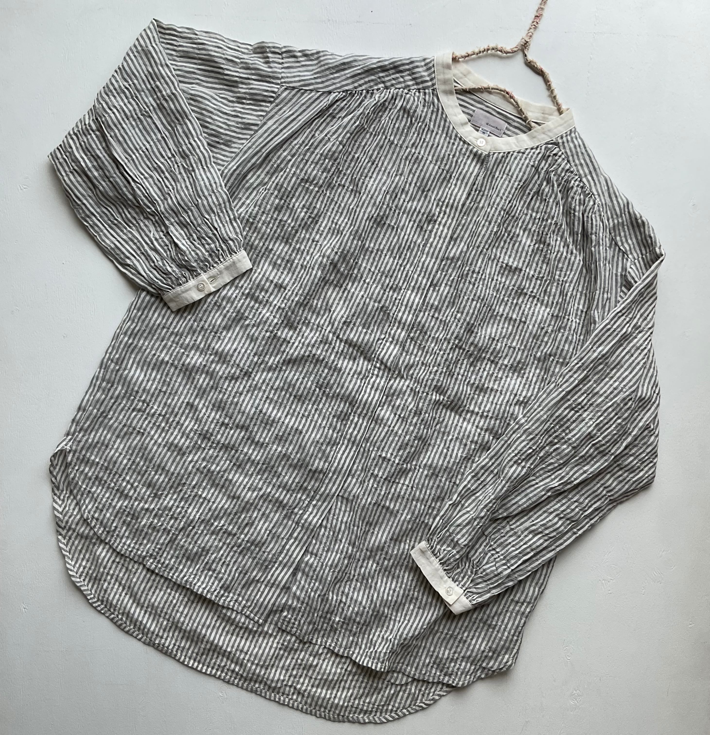 バンドカラーのデザインが特徴的なチュニック丈シャツです! すっきりとした首元が上品な印象を与え、リラックスした雰囲気を演出します。さらりとした肌触りの生地は心地よく、1枚での着用はもちろん、レイヤードスタイルにも最適です。カジュアルからきれいめスタイルまで、幅広いコーディネートに応えてくれます! 天然素材の優しい風合いは、着用するたびにその心地よさを実感していただけます。