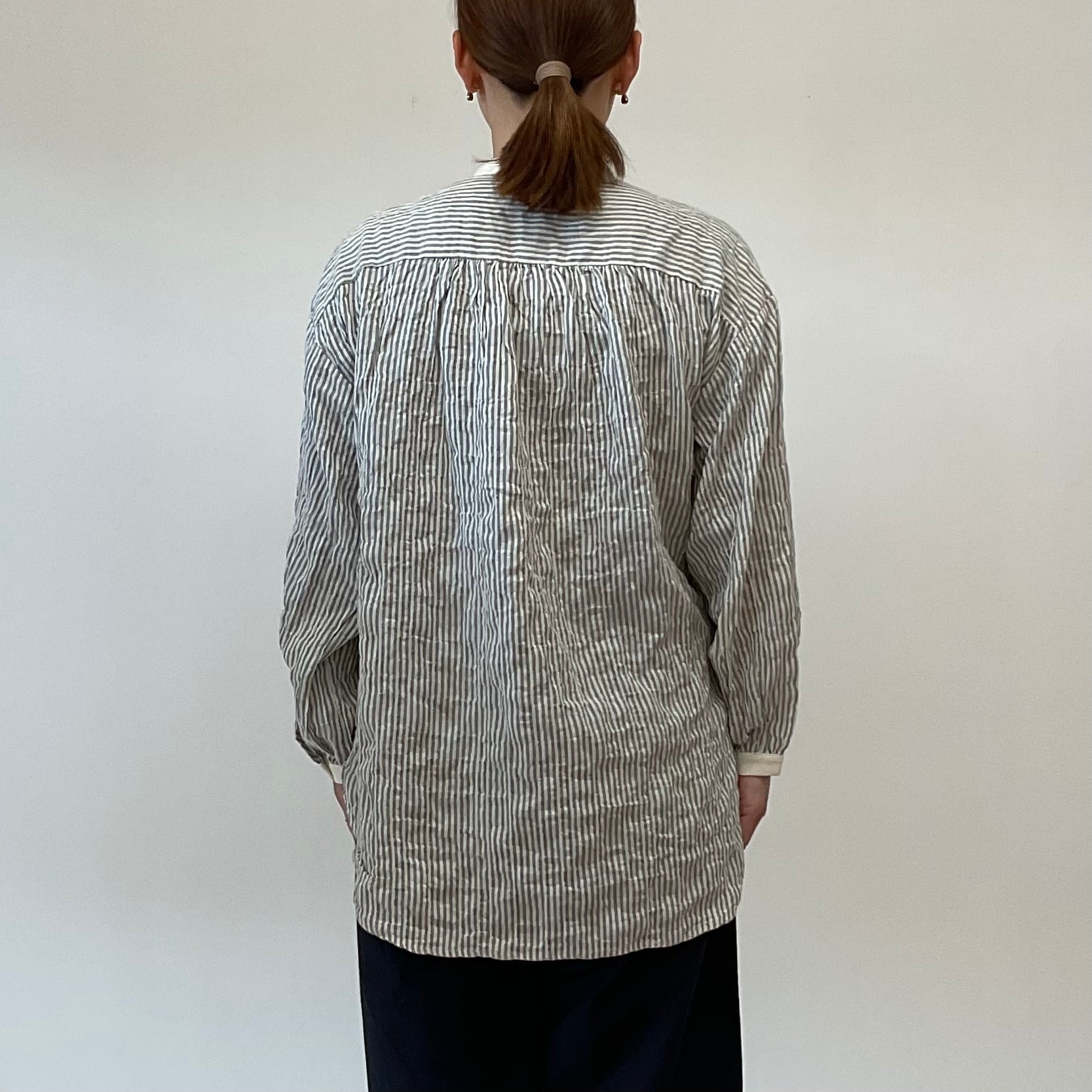 お尻周りが隠れるチュニック丈のシャツです。