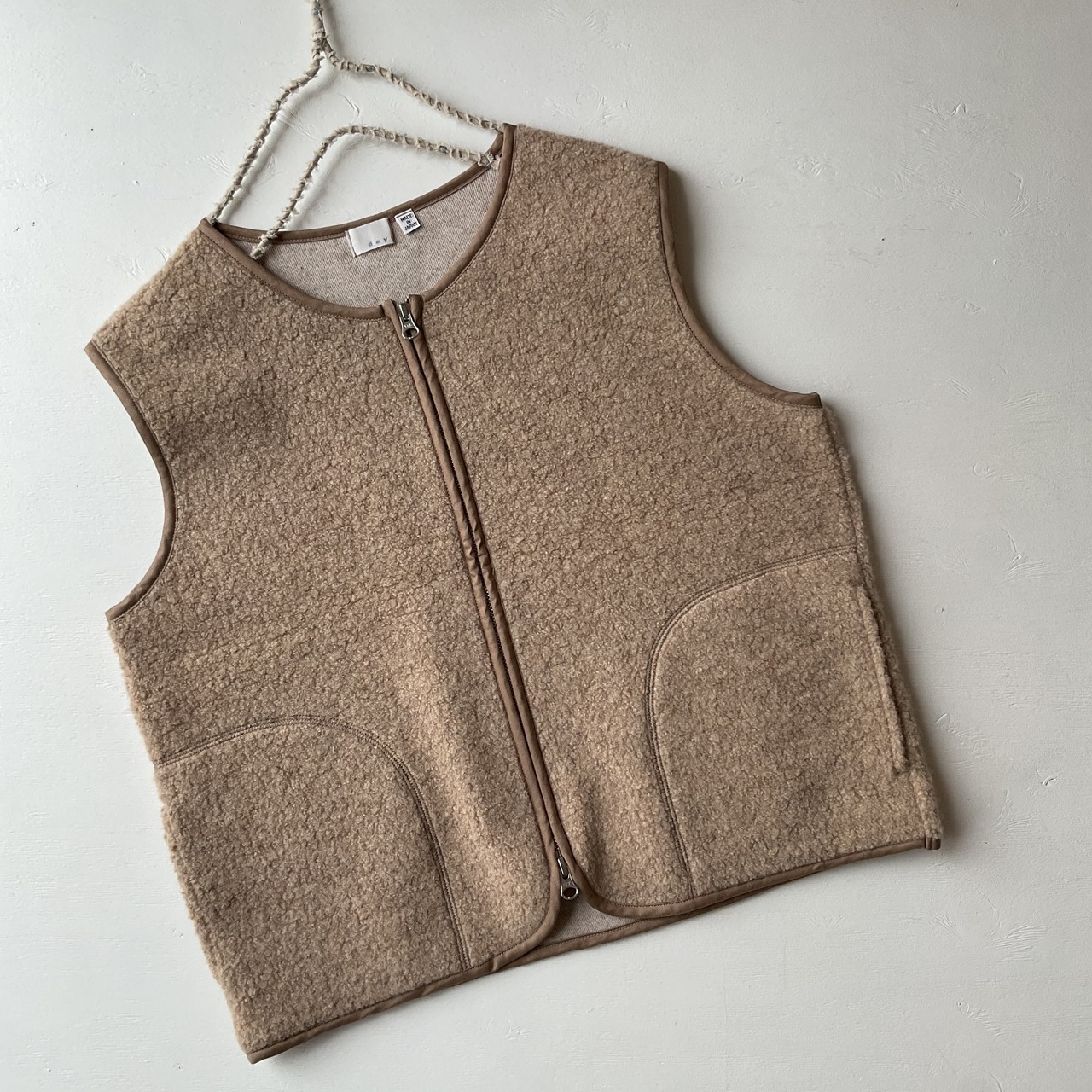 心地よい着心地のジップアップベストです! ウールリッチパイル素材が持つ温かみある風合いは、肌に優しく、リラックスした着用感を提供します。軽やかなデザインは、春先や秋口の重ね着にも最適で、どんなスタイルにも自然に溶け込みます! 仕事着からカジュアルスタイルまで、さまざまなシーンで活躍する一枚です。シンプルなデザインにもかかわらず、着用するたびにその快適さを実感していただけます。 春の暖かさが心地良い日や、少し肌寒さを感じる時に、さっと羽織るのにぴったりのアイテムです!