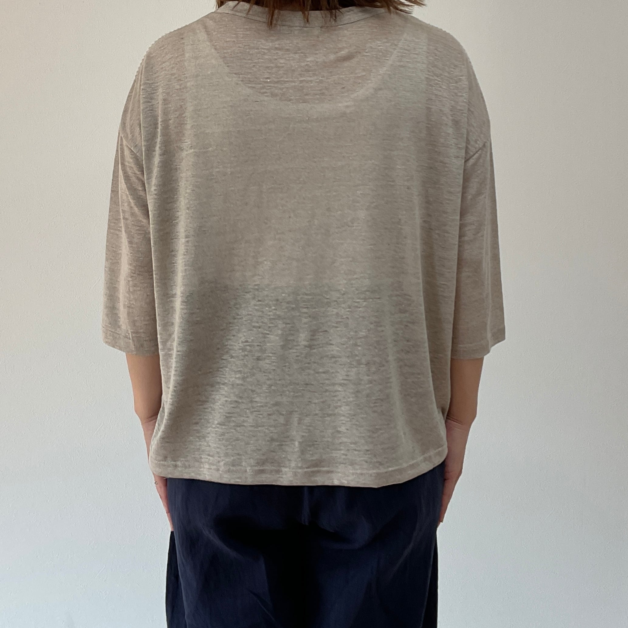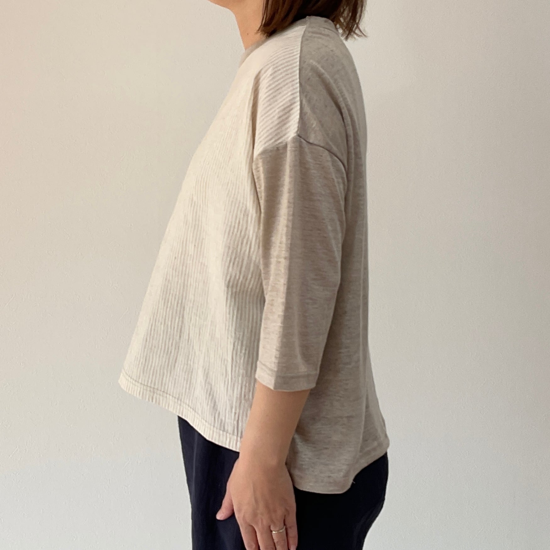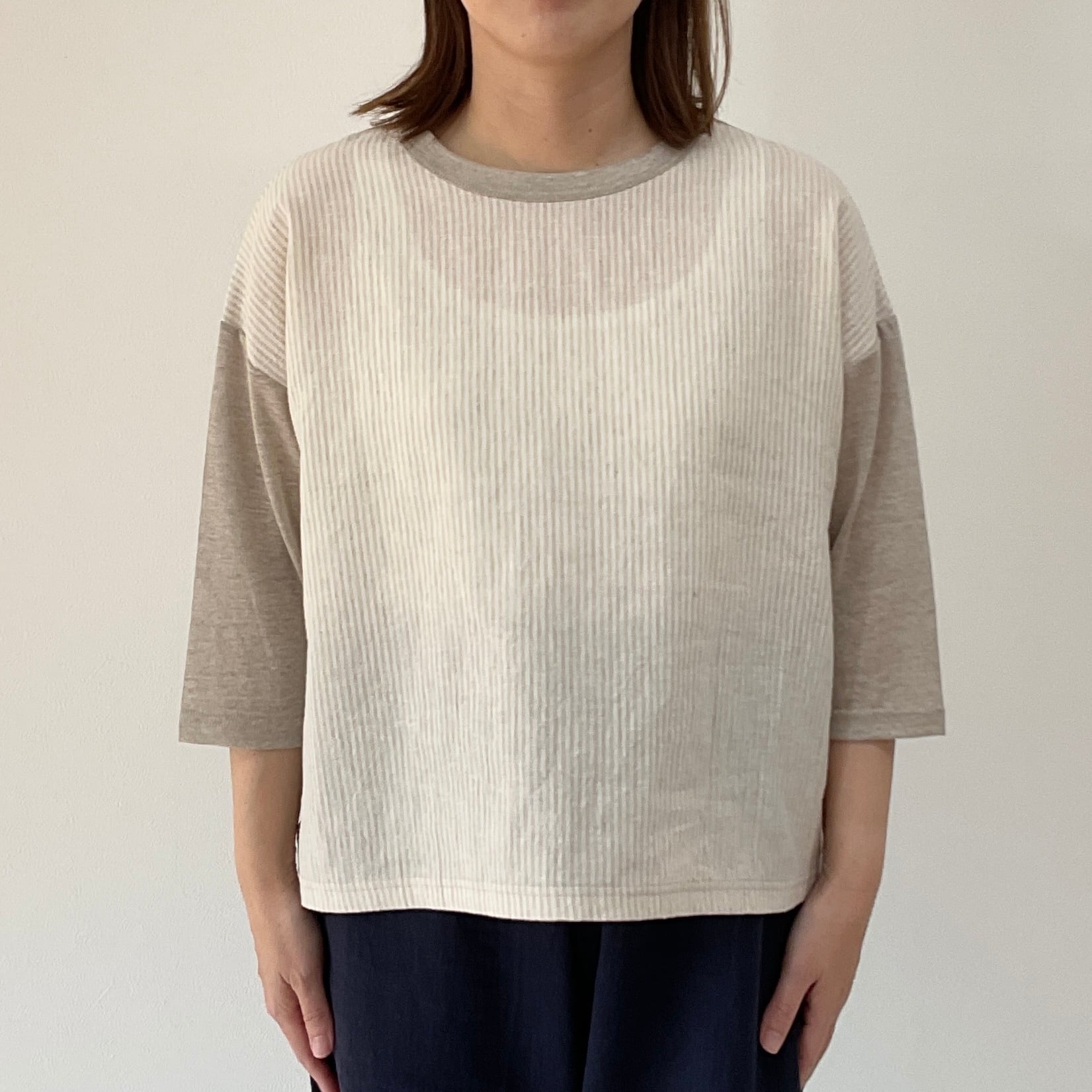 プルミエルリネンを使用した布帛切り替え7分袖プルオーバーは、通気性に優れた軽やかな素材が魅力です。7分袖デザインは腕を美しく見せ、快適な着心地ながらもエレガントな印象を与えます。日常のおしゃれ着やお出かけにもぴったりの一着です。さらりとした肌触りは、暑い季節にも心地よく、さまざまなボトムスとのコーディネートに幅広く対応します。また、レイヤードスタイルにも最適で、カーディガンやジャケットとの重ね着も楽しめます。大切にお手入れすることで、長くご愛用いただける商品です!