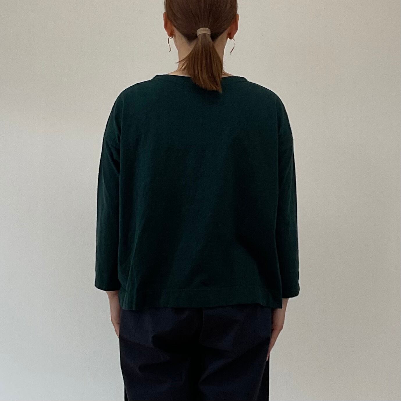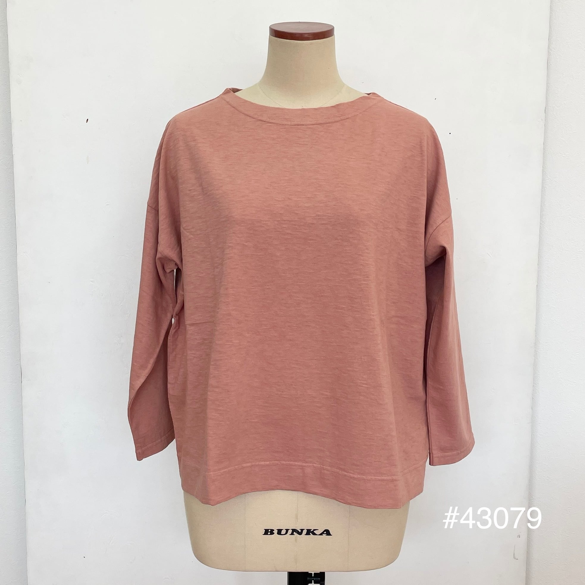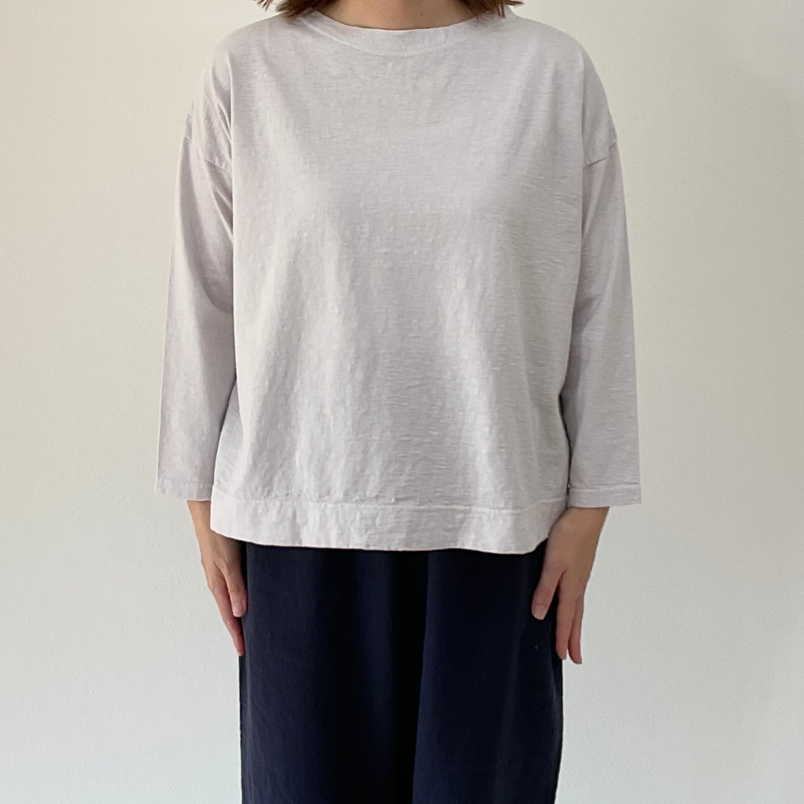 デイズオリジナル生地の19/バーフィル天竺を使用した、8分袖ボートネックプルオーバー