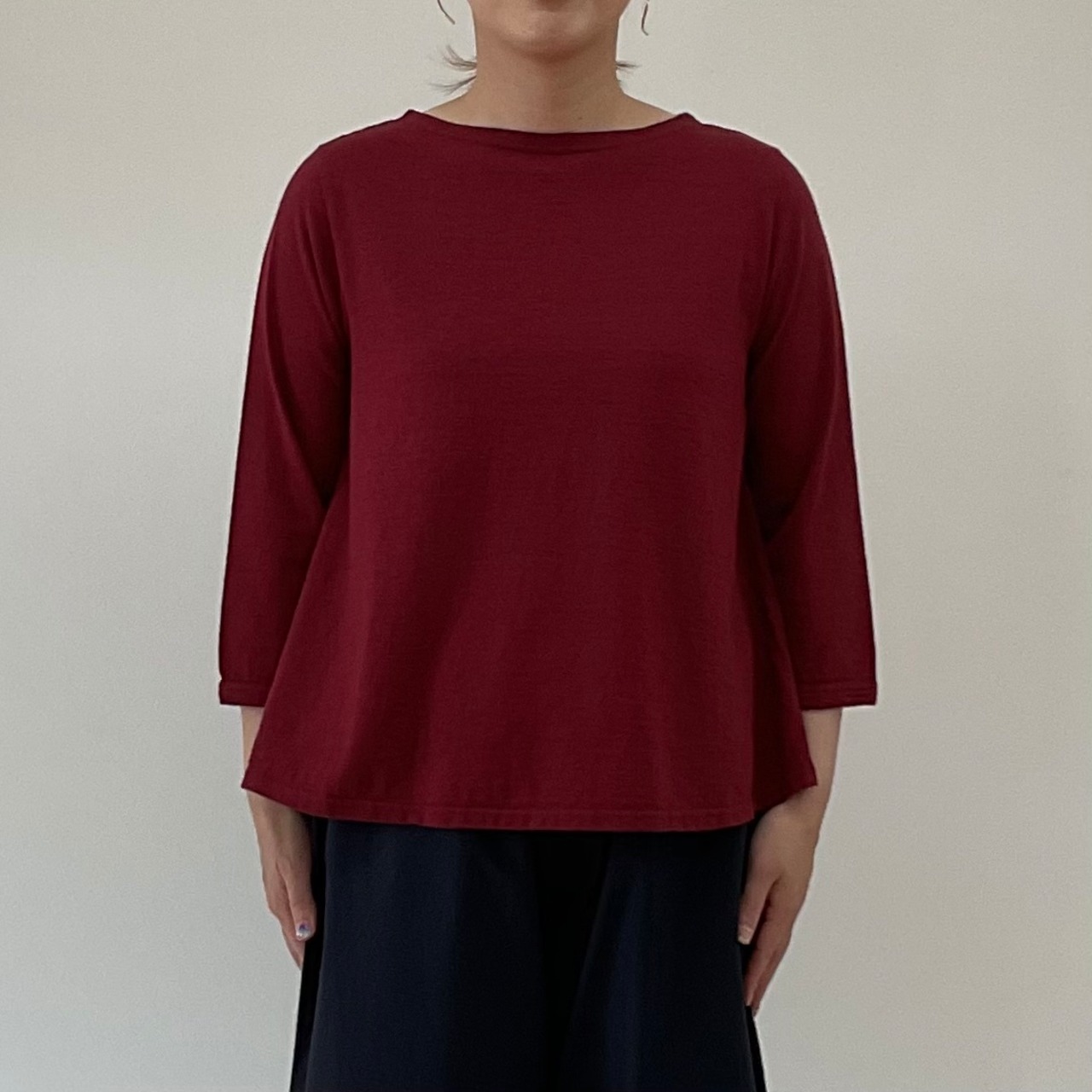 7分袖Aラインボートネックプルオーバー