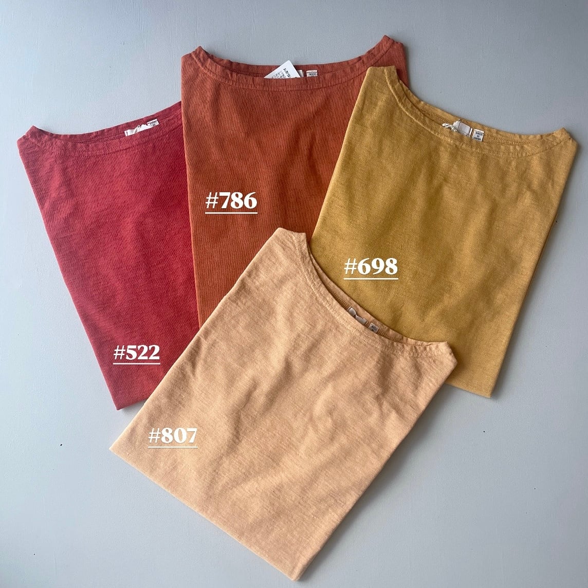 製品染めで染め上げているため、