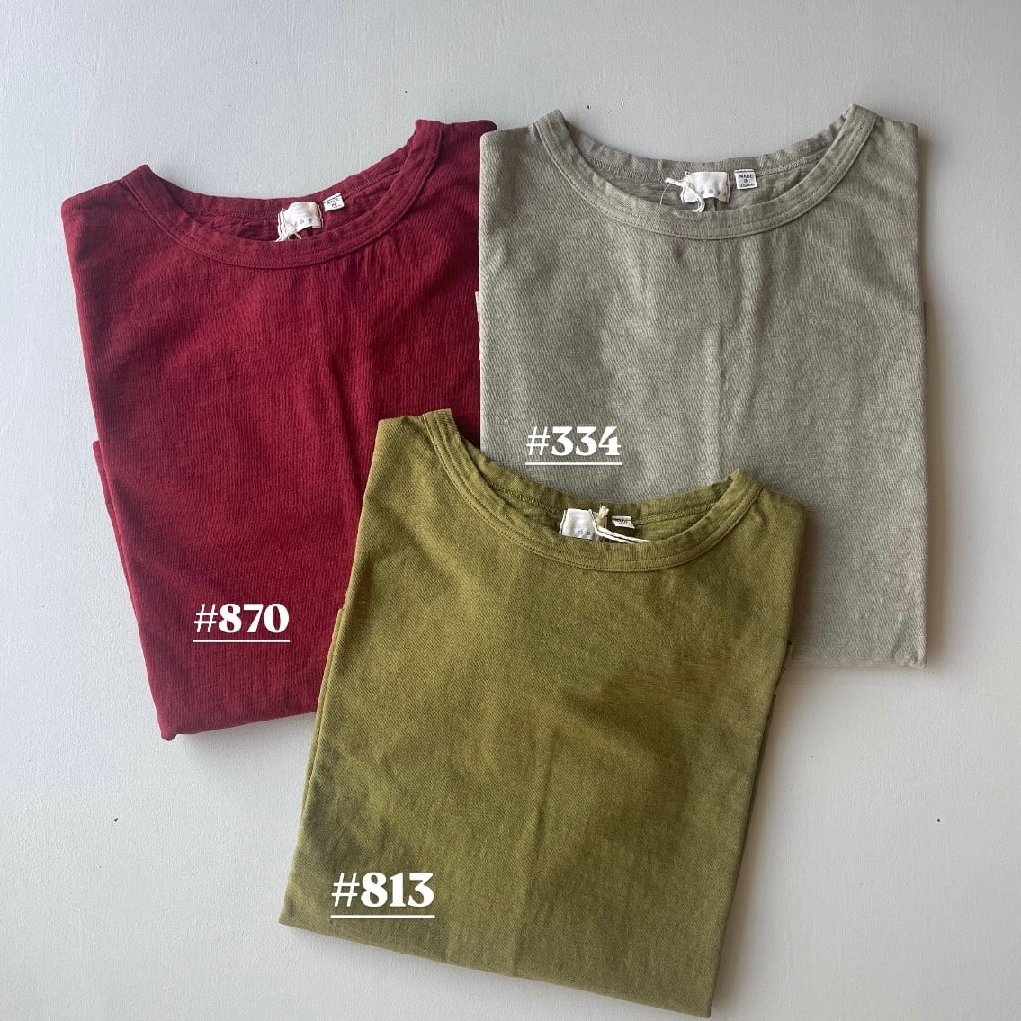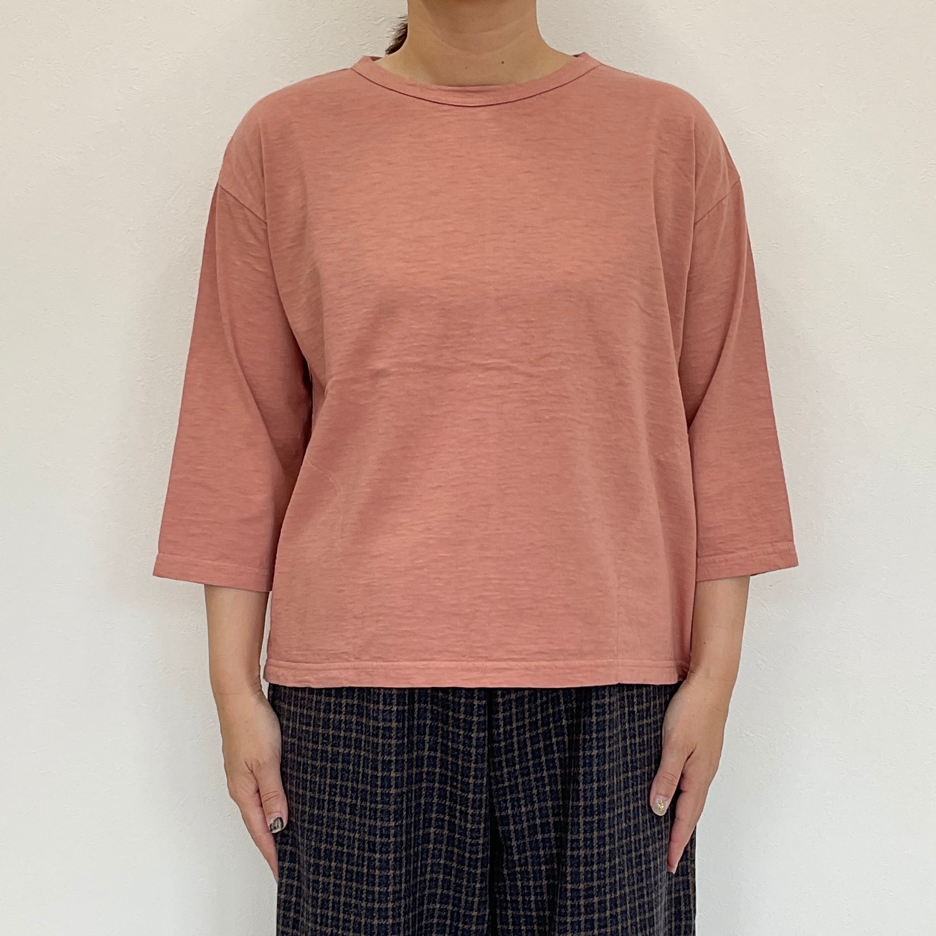 バーフィル天竺というデイズオリジナル生地を使用しています。凹凸のあるポコポコとした生地感が特徴です。つるっとした生地とは違うカジュアルで優しい風合いや表情を楽しめます。